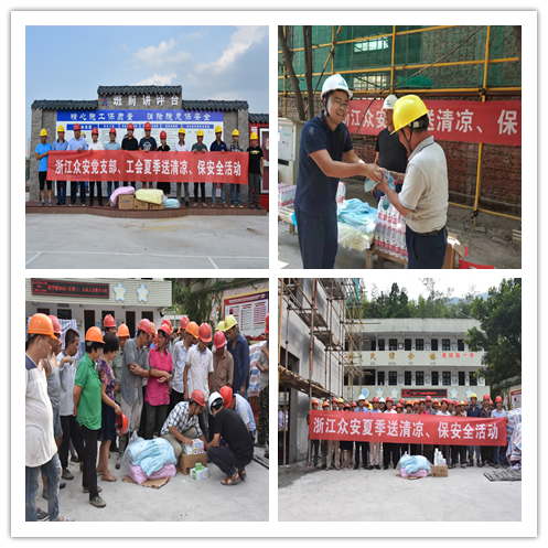 自8月開始,集團各級領(lǐng)導(dǎo)帶著滿滿的問候,深入項目建設(shè)工地現(xiàn)場,先后前往貴州、河北、江西、溫州、嘉興、杭州等各個項目部,代表眾安建設(shè)集團向堅守崗位的一線工作人員表示慰問,為建筑工人發(fā)放防暑降溫藥品、清涼油、毛巾等物品。