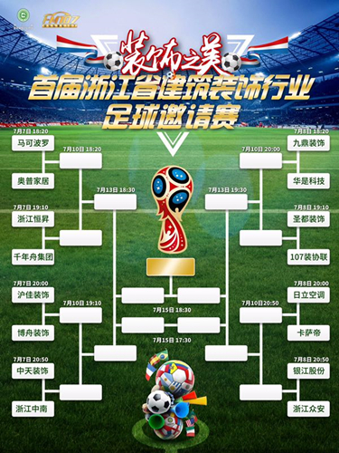 本次邀請(qǐng)賽決賽及閉幕式于7月15日晚舉行,讓我們祝愿各個(gè)裝飾企業(yè)在比賽中取得好成績,也共同期待首屆浙江省建筑裝飾行業(yè)足球邀請(qǐng)賽“大力神杯”得主的誕生!共同期待足球“堅(jiān)韌不拔、勇攀高峰”的精神在浙江省建筑裝飾行業(yè)傳揚(yáng)和激勵(lì),為建設(shè)“和美浙江”提供精神食糧!