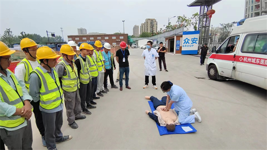 6月13日下午,圍繞全國第22個安全生產(chǎn)月“人人講安全,個個會應(yīng)急”活動主題,集團(tuán)開展安全生產(chǎn)專題應(yīng)急演練活動。本次活動由杭州市城東醫(yī)院、東湖街道星火安置房建設(shè)EPC項目部共同協(xié)辦。演練主要涵蓋了消防應(yīng)急救援、高處墜落、墜物打擊、防中暑、防中毒等環(huán)節(jié)。浙江眾安建設(shè)集團(tuán)工管中心相關(guān)人員及監(jiān)理公司、項目部相關(guān)人員參與了這次演練活動。