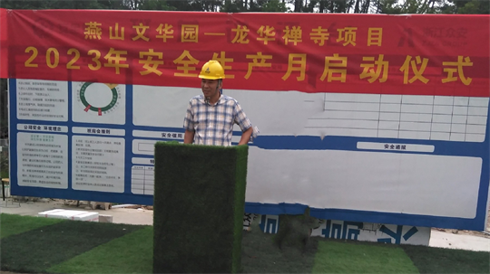 2023年6月是第22個全國“安全生產(chǎn)月”,為認(rèn)真落實響應(yīng)《集團(tuán)2023 年“安全生產(chǎn)月”活動方案》相關(guān)要求,圍繞“人人講安全、個個會應(yīng)急”活動主題,全面貫徹落實黨的二十大精神和習(xí)近平總書記關(guān)于安全生產(chǎn)工作的重要批示,集團(tuán)于5月31日在杭州千島湖龍華禪寺項目正式啟動“安全生產(chǎn)月”系列活動。